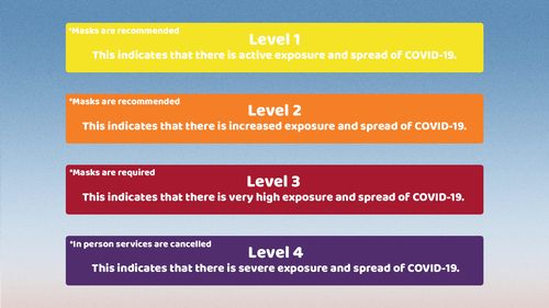 What does a level 3 mean? Level 3 indicates that there is very high exposure and spread of COVID-19. Masks are